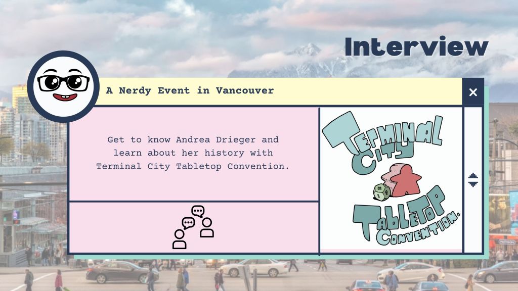 On Saturday, March 27 and Sunday, March 28, Terminal City Tabletop Convention (TCTC) hosted its annual event, online for the second year in a row. I had Twitch on the TV throughout both days to watch as games were played. In particular, I was eager to see how the RPG Free Spacer could run, and Rachel participated in a playtest run of ‘Tis Mutiny, a pirate card game. Eager to learn more, I reached out to Andrea, one of the co-owners of TCTC to find out more about the convention and about the nerdy community here in Vancouver, BC.