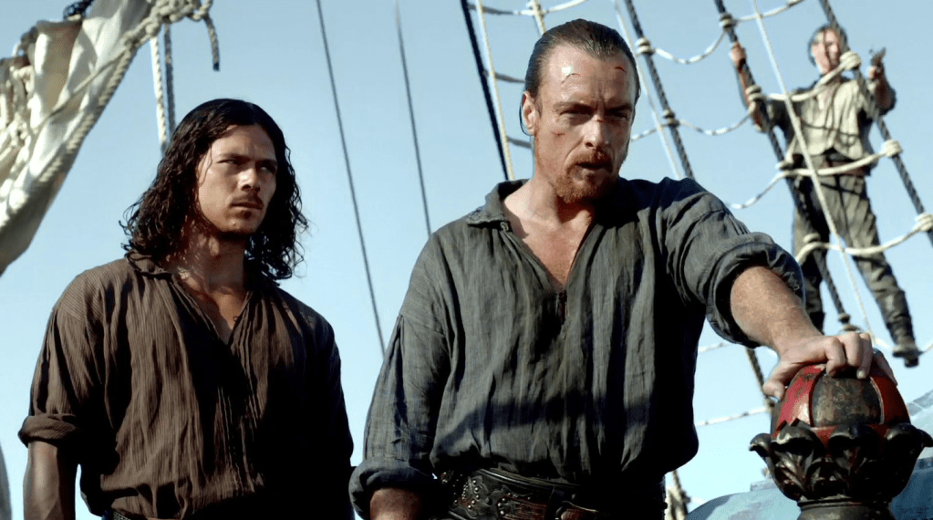 It is GLORIOUS to watch him step into command, bringing order to the chaos. The men hesitate only a moment before obeying. Captain Flint is back!