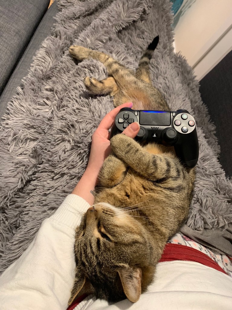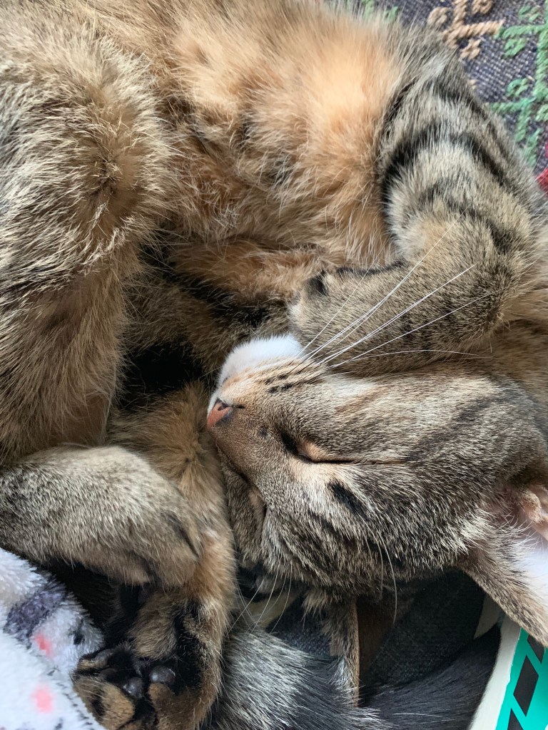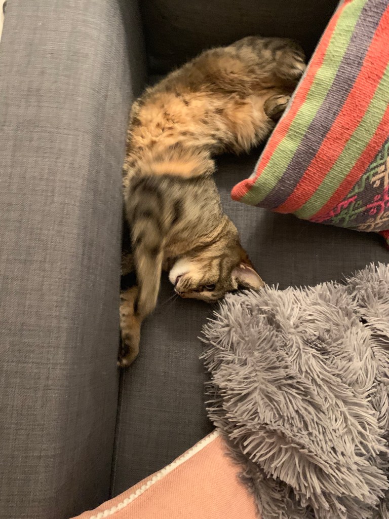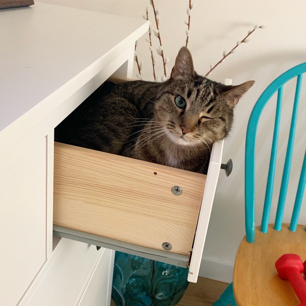 When Tricia moved to Texas, Rory moved with her. When she moved to Greece, he stayed behind with her parents. But after an entire year, when she came home for Christmas, he ran to her and followed her everywhere. Cats are the actual best. When Tricia moved to Vancouver, she brought Rory with her for a terrifying four days in the car. They lived together happily until she was laid off and kicked out her home, so he lived with Tricia’s friend Ken for three months while she found a cat-friendly apartment. Tricia, Rachel, and Rory all moved in together in July 2020, and will hopefully stay in one place for a long time to come!