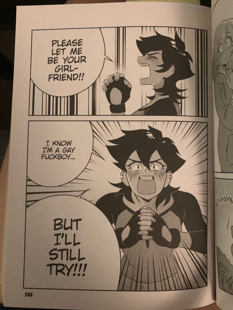 Every page of this graphic novel was an absolute delight. I literally screamed several times, and I retold almost every page to my girlfriend before forcing it to read it for herself. Every queer lady should read this hilarious story about a lesbian f***boy who is duped into becoming a “decent lesbian,” full of hot ladies, motorcycles, fake dating, and emotions.