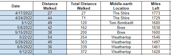 Rachel walked 30 miles this week | 1428 miles to Mordor