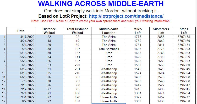 Tricia walked 22 miles this week | 1350 miles to Mordor