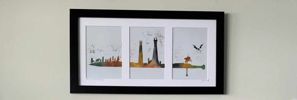 There were a lot of great options, and I ended up choosing a watercolour triptych with scenes from each movie in the trilogy balanced on a sword. Rachel got a bottle opener shaped like the shards of Narsil. Why the sword theme? Well, it’s in Rivendell that Bilbo gives Sting to Frodo, and in the books, Aragorn leaves the elven city equipped with Narsil’s shards reforged. Initially, Rachel wanted to get an actual sword, but ECCC only sold foam swords (probably smart), and in the end a real sword felt more like an End of the Journey reward.